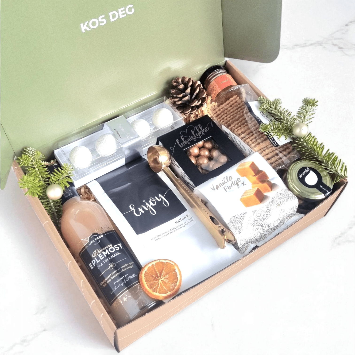 Disse gavepakker fås i forskellige størrelser fyldt med sæsonens udvalgte gaver. Udsøgte varer og en førsteklasses gaveoplevelse.