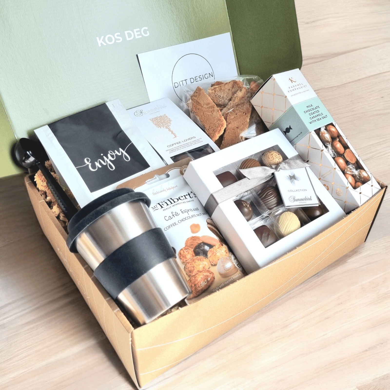 Gavepakke med udsøgte gourmetgaver til dine medarbejdere. En hyggelig omgang med smukke produkter, hvoraf flere er lokalt fremskaffede og norskproducerede. Indholdet er pænt pakket ind i en gaveæske - leveret direkte til døren! En fantastisk oplevelse!