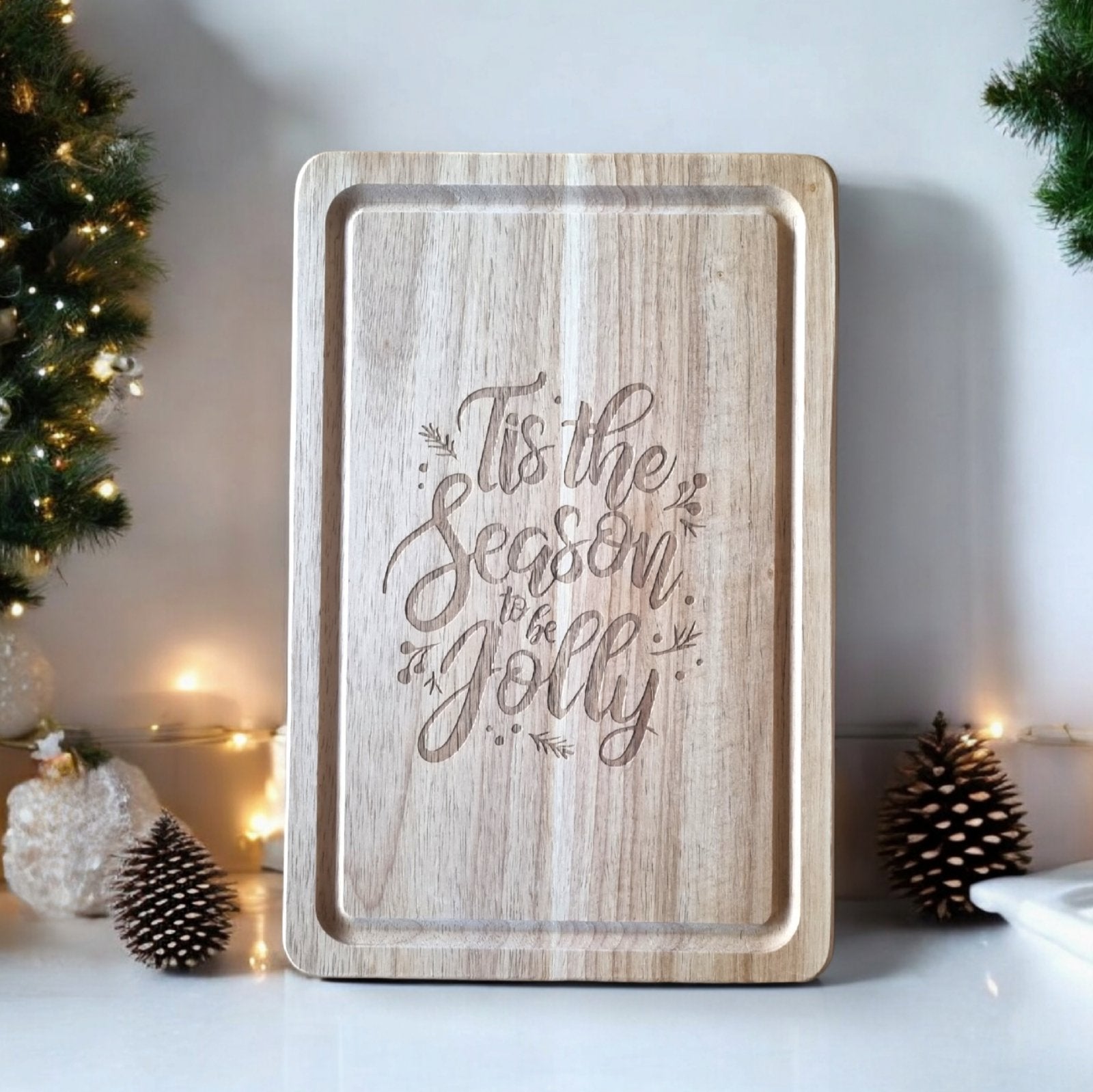Et festligt skærebræt med hyggeligt motiv - perfekt at tilføje til en julegaveæske.