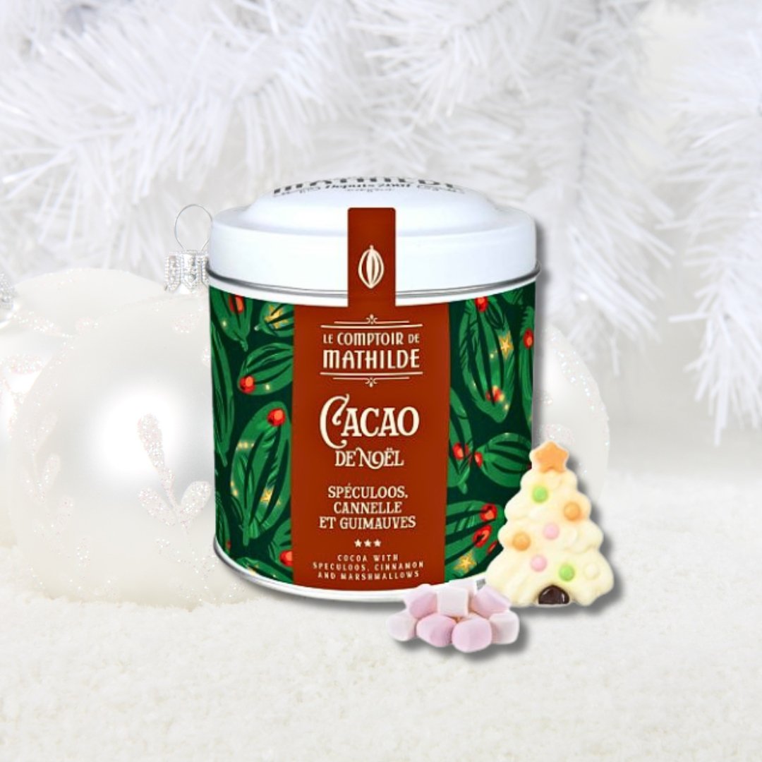 Festive cocoa drink with warming cinnamon, nutmeg and small, soft marshmallow pieces.