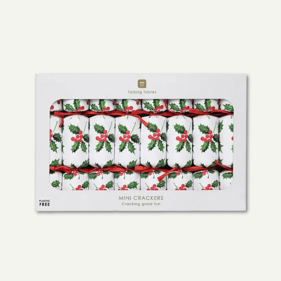 Gi julebordet et luksuriøst preg med disse smellbonbon i klassisk kristtorn-design. Miniknekkerne er plastfrie, resirkulerbare og kommer i pakker à åtte – perfekt for større selskap. Disse er fulle av små overraskelser og morsomme aktiviteter som skaper festlig stemning rundt bordet.