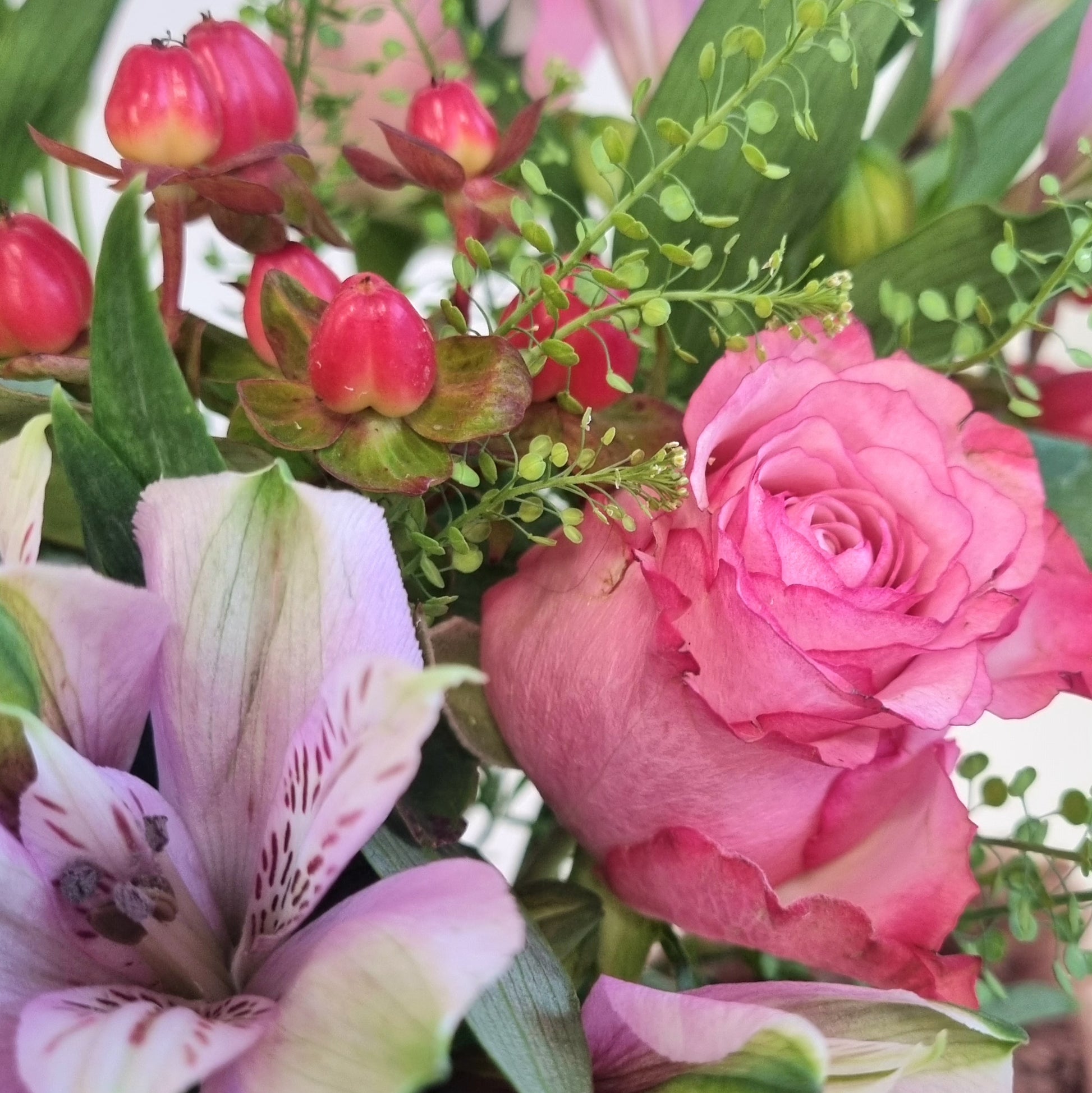 *Buketten er ca. 38 cm lang. Klipp stilkene til ønsket lengde for best resultat. Hver bukett settes sammen med sesongens blomster, så variasjoner fra bildet kan forekomme. Vase følger ikke med.