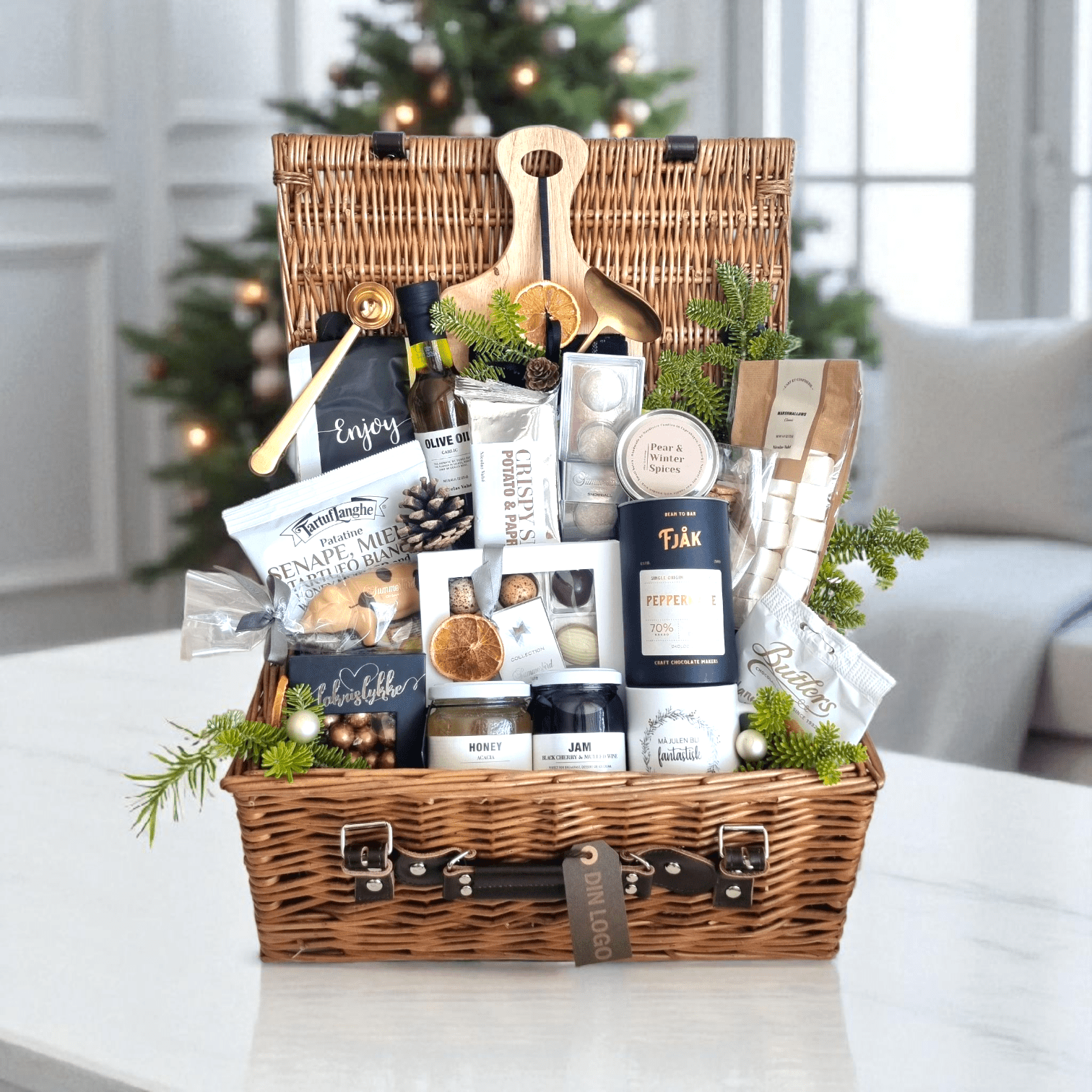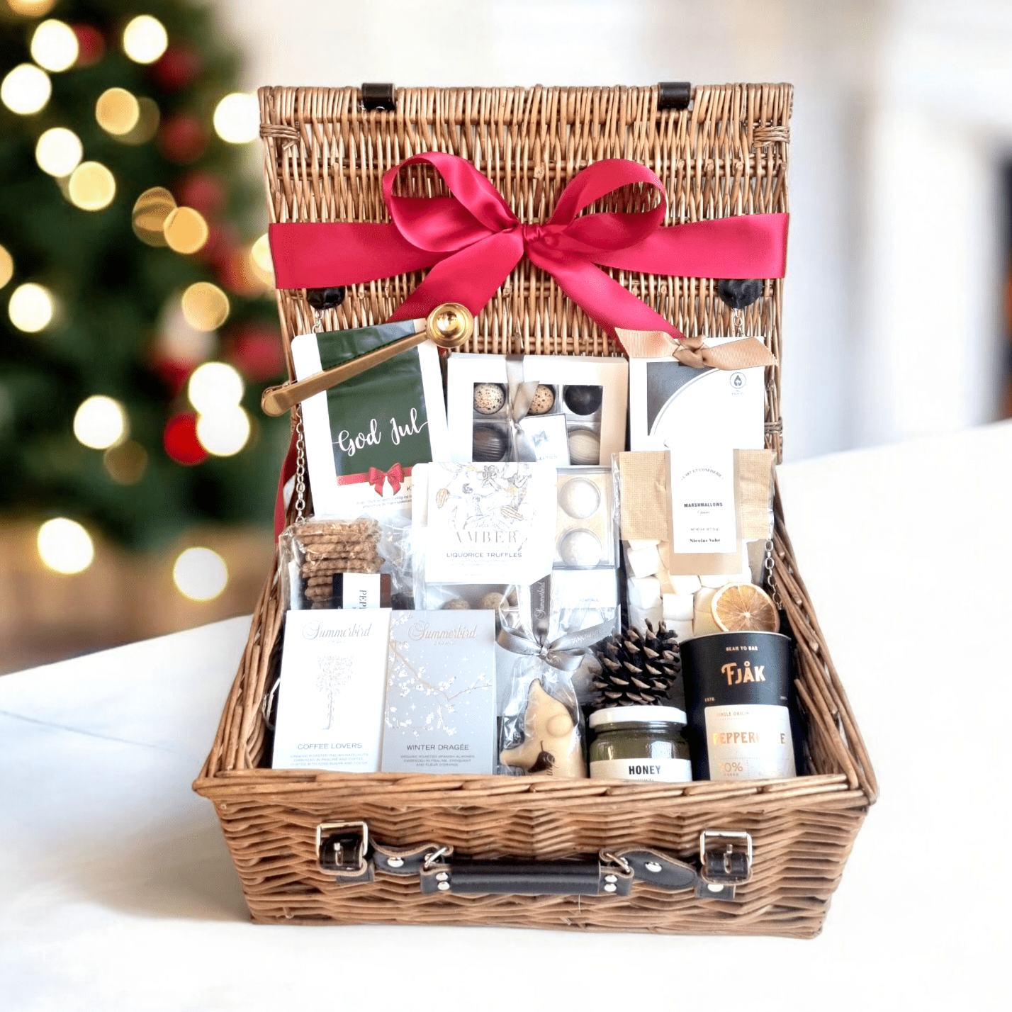 En läcker julklappskorg med underbara produkter. Detta är ett utmärkt sätt att tacka vänner, familj eller kollegor för det gångna året.